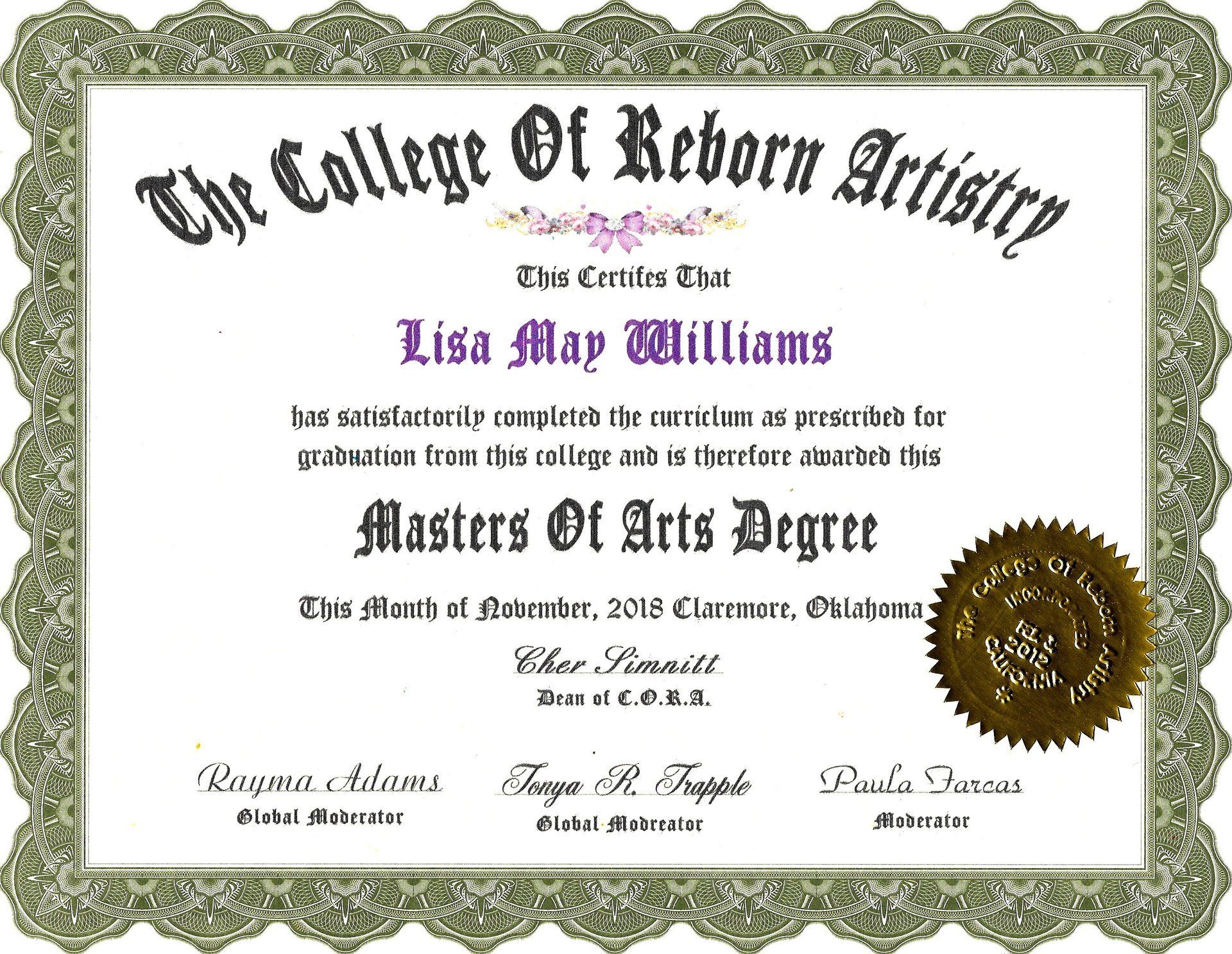 I am super excited to announce that this November of 2018 I have officially graduated from the College of Reborn Artistry (CORA) and now have a Master Reborn Artist Degree! CORA is an online college that can be found here: http://reborningartists.proboards.com/ I completed 24 classes and fulfilled other requirements to earn my degree. Graduation was held at CORA Conference in Oklahoma this year and was an amazing experience! I learned so much from some very talented women! I was able to attend an in-person reborning class at conference in addition to Graduation.